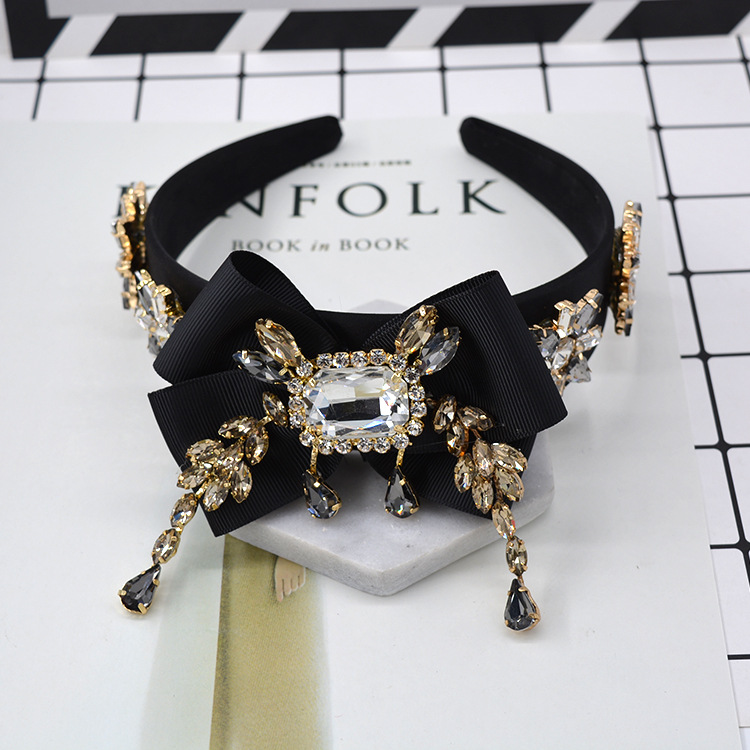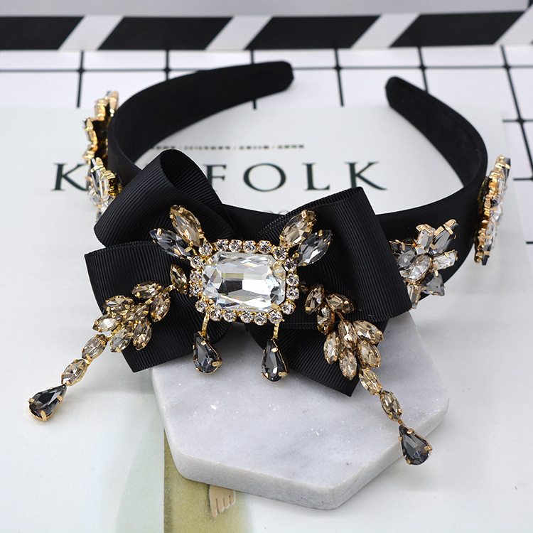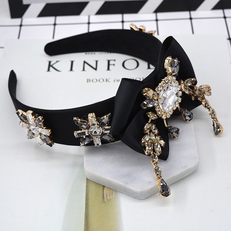 Bow Geometry Set With Large Gemstone Tassel Style Hair Hoop Jewelry
