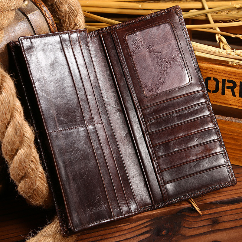 Men’s Oil Wax Leather Long Wallet Grain Leather Casual