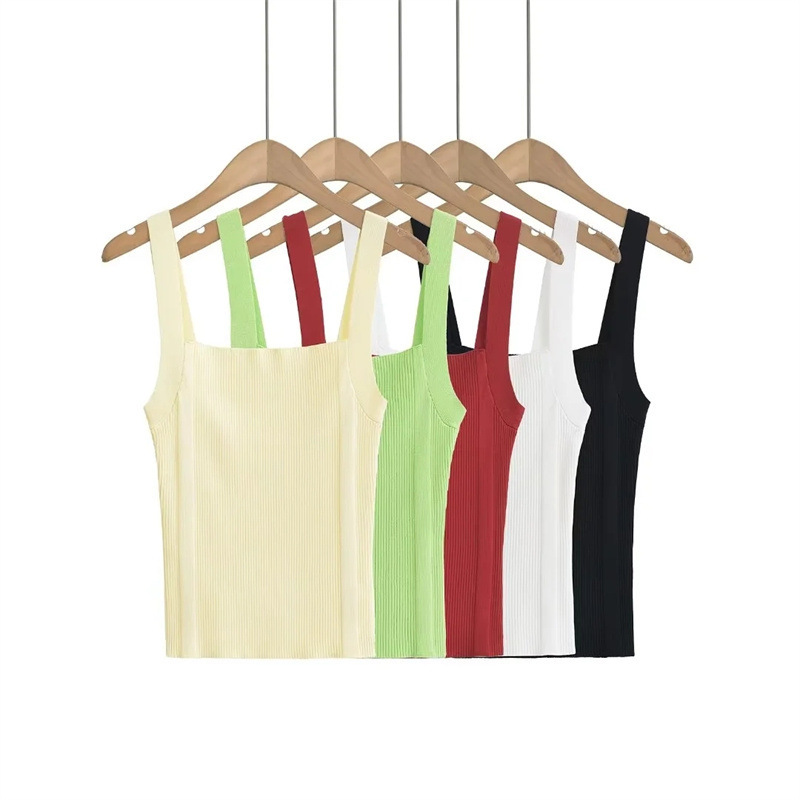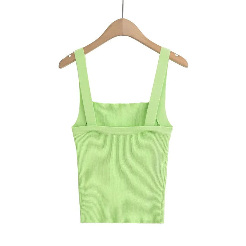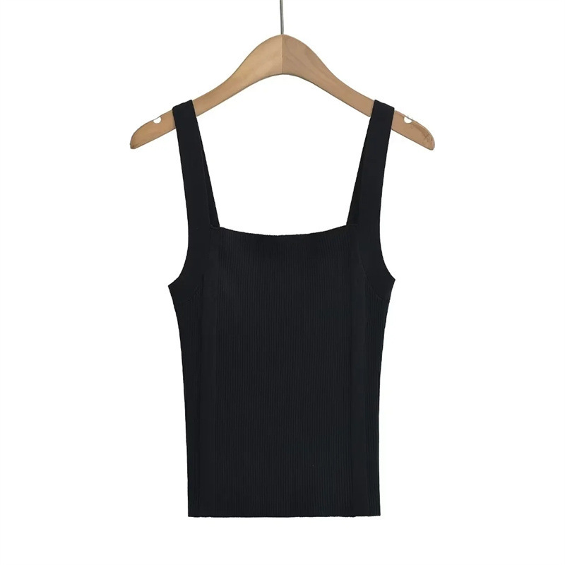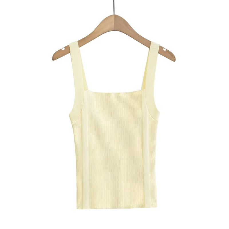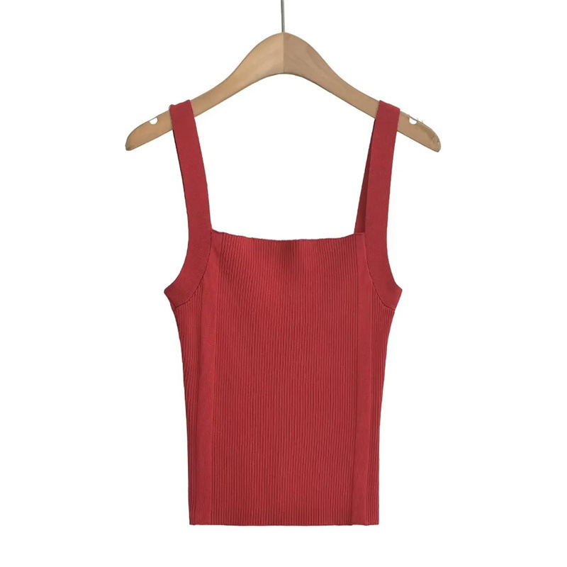 Sweet Cool Hot Girl Flat Wide Shoulder Knitted Camisole Summer High Waist Slim Fit